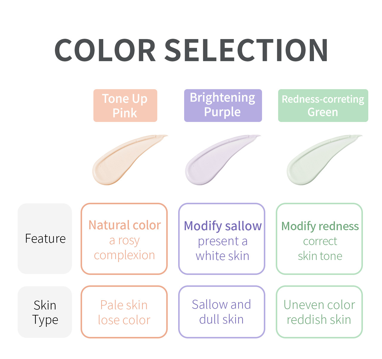 2. 3 color choices for correct skin tone